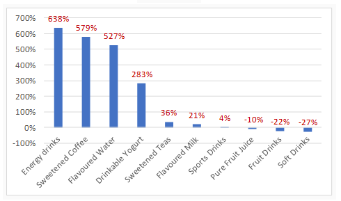 Change in Per Capita Sales Volume of Select Sugary Drinks in Canada